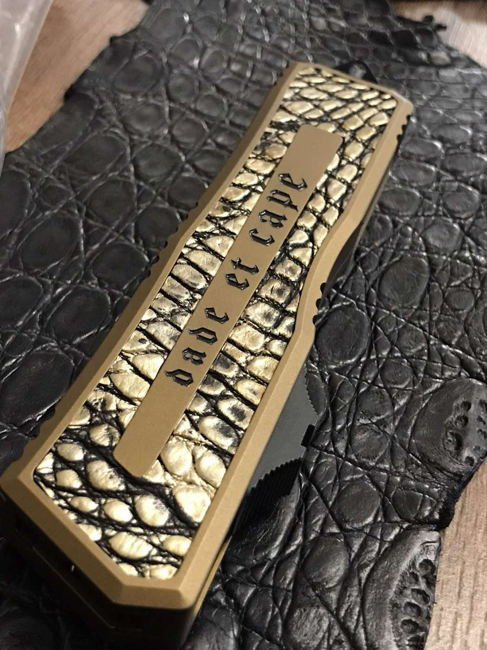 Alexander Radchenko has created a special custom version of knife, where Microtech’s classic design meets art and symbolism. The unique alligator leather finish transforms each piece into an art object.