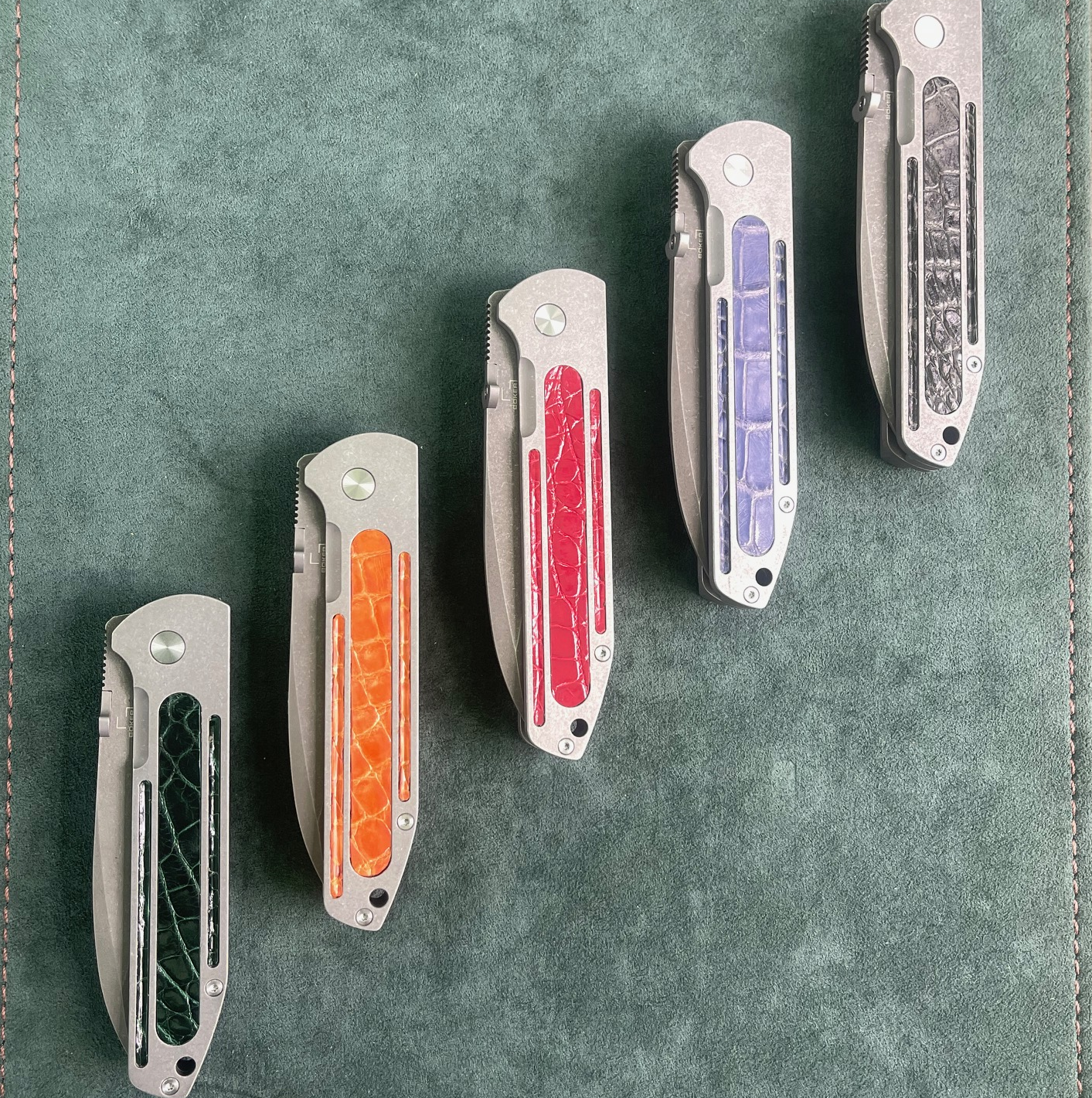This model combines iconic design with unique artistic customization. Alligator leather inlays give each piece a distinctive individuality and a premium character. The knife embodies both ruggedness and elegance at the same time — going far beyond a simple tool and becoming a refined